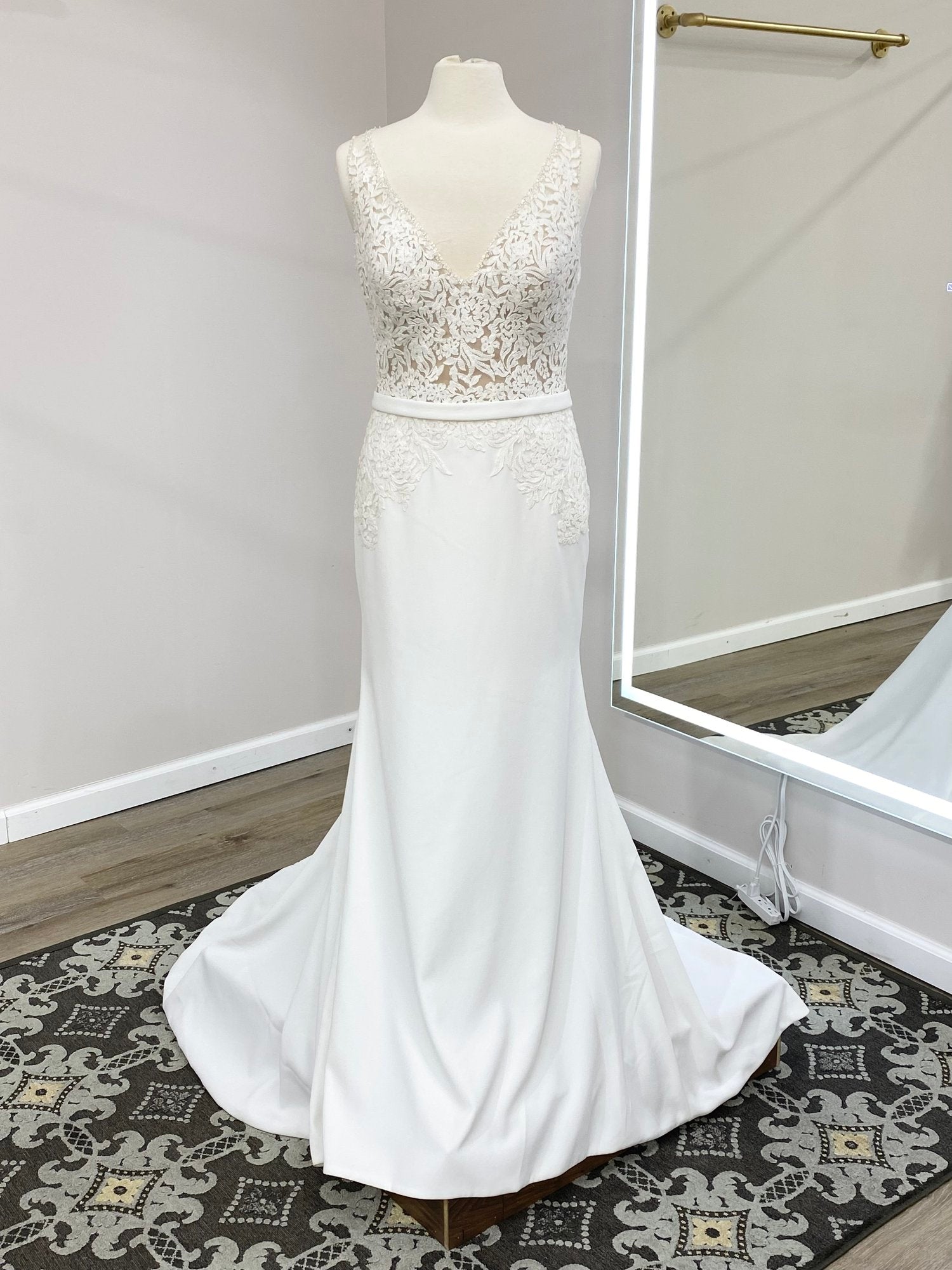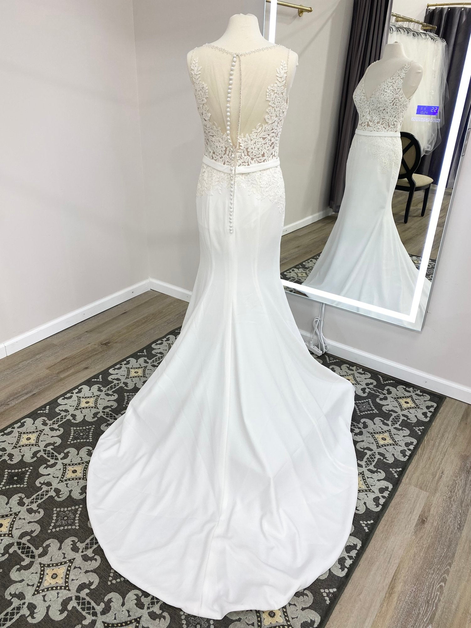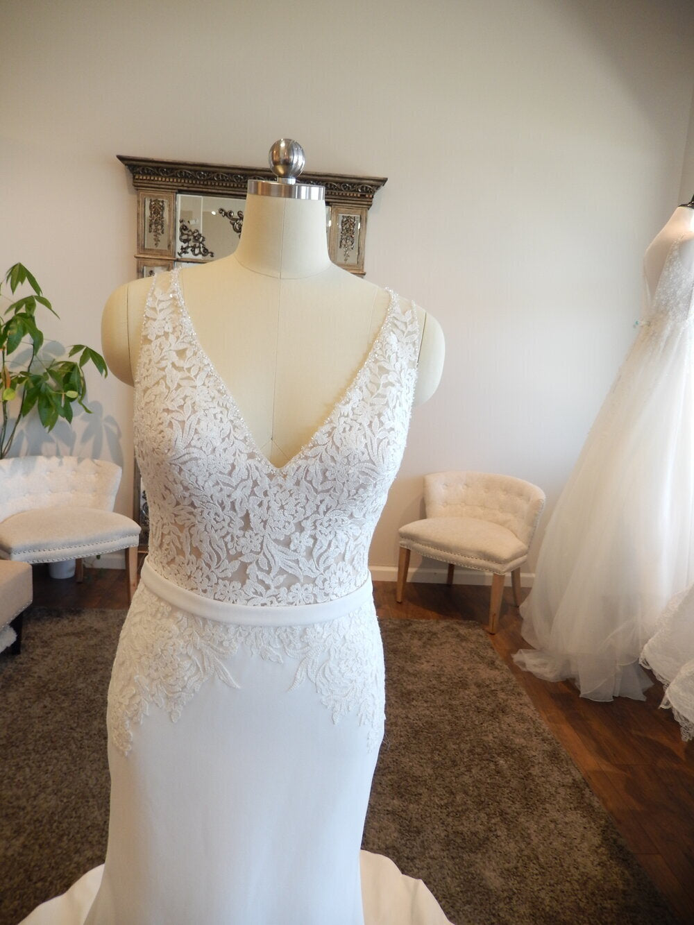 In the description of each dress listing you will see a range of measurements that the dress will be alterable for. If your current waist measurement is not within this range, you will not be able to try the dress on. Selecting the "Shop by Size" collection in the menu that matches your waist measurement will show you all the dresses in the store for you!