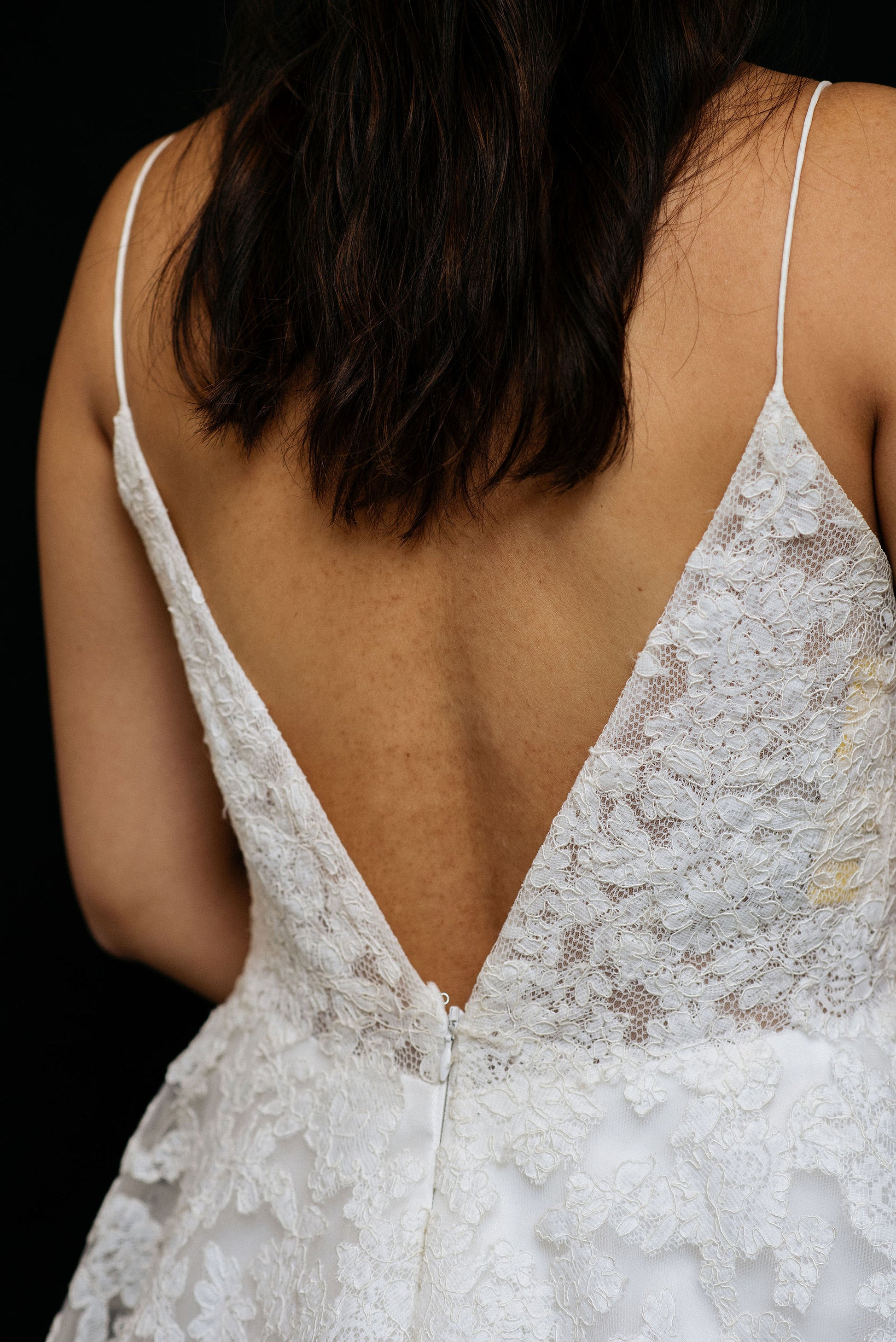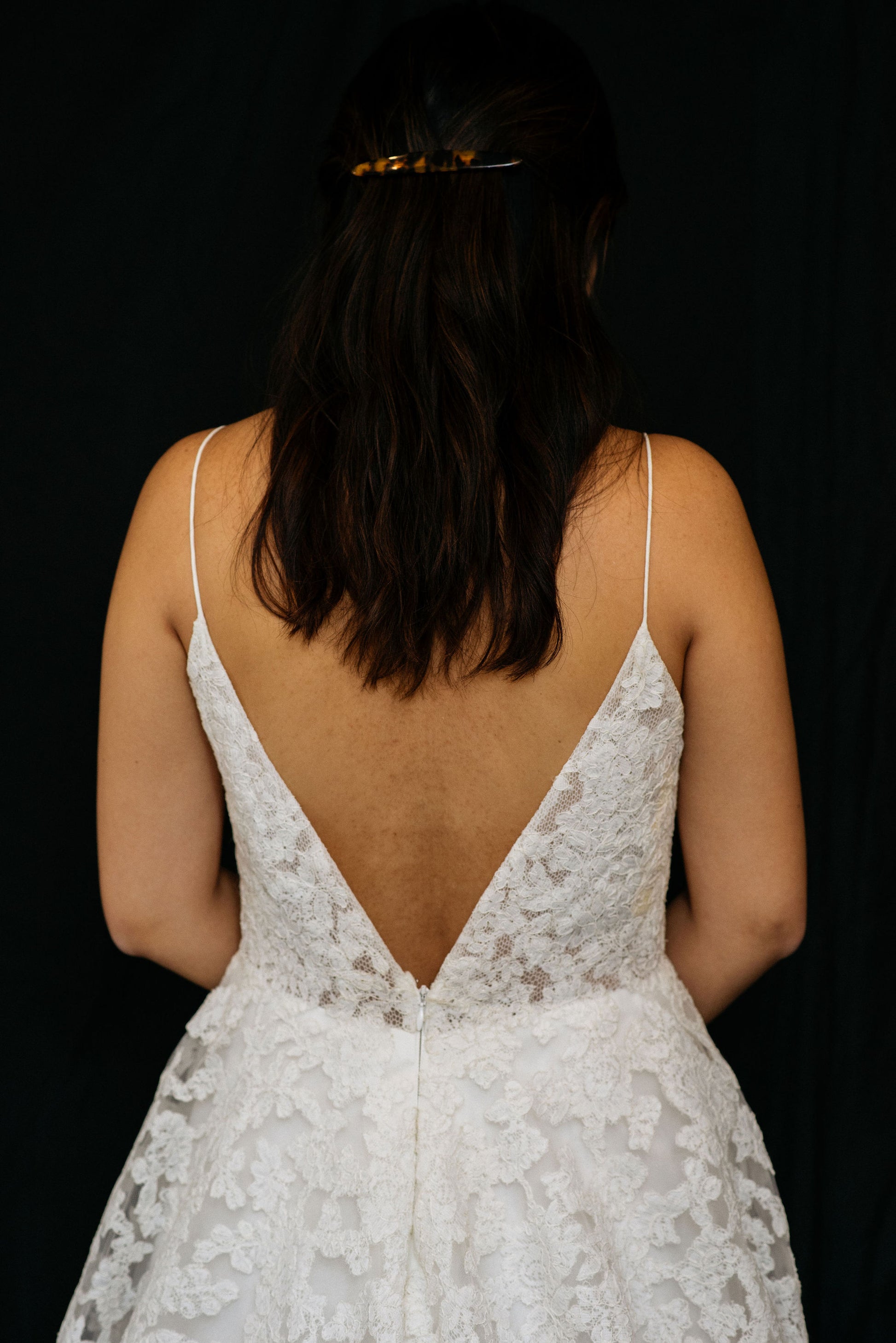 These flowing fabrics create a wholly ethereal look, while a plunging V-neck and statement back details add a sensual, playful edge