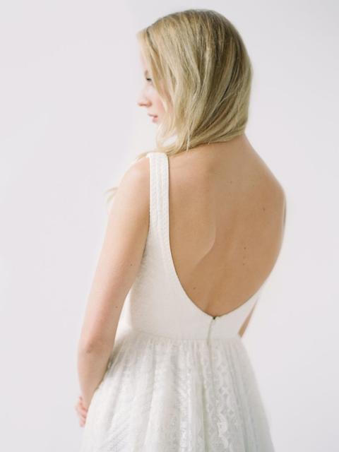 Because sizing scales vary so much, we have standardized our sizing by waist measurement. We personally measure each dress when it comes into the shop and we also estimate the amount that the dress can be sized up or down in alterations based on advice from the seamstresses that we work with.